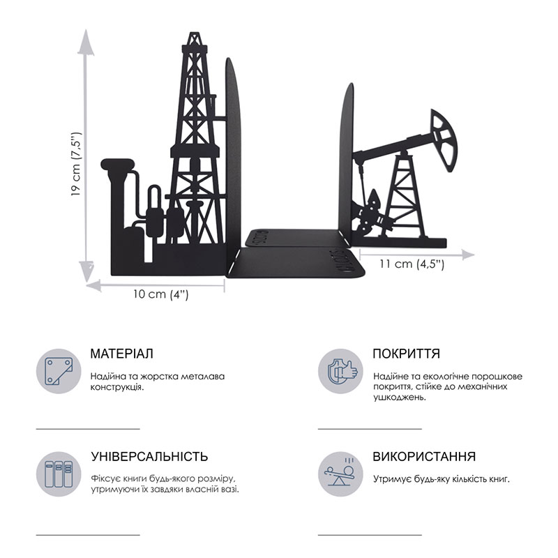 Упоры для книг Glozis Factory (черные)