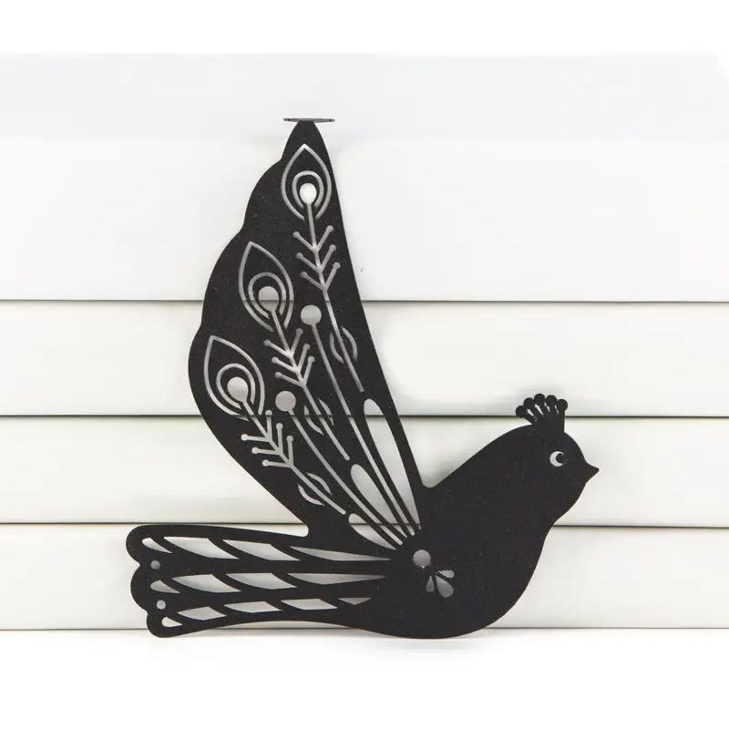 Металлический материал, порошковая покраска и мастерская лазерная фрезеровка обеспечивают долговечность и красоту упоров. Даже птицки в клетке на упорах выглядят настолько живо, что кажется, будто они готовы взлететь со страниц ваших книг.