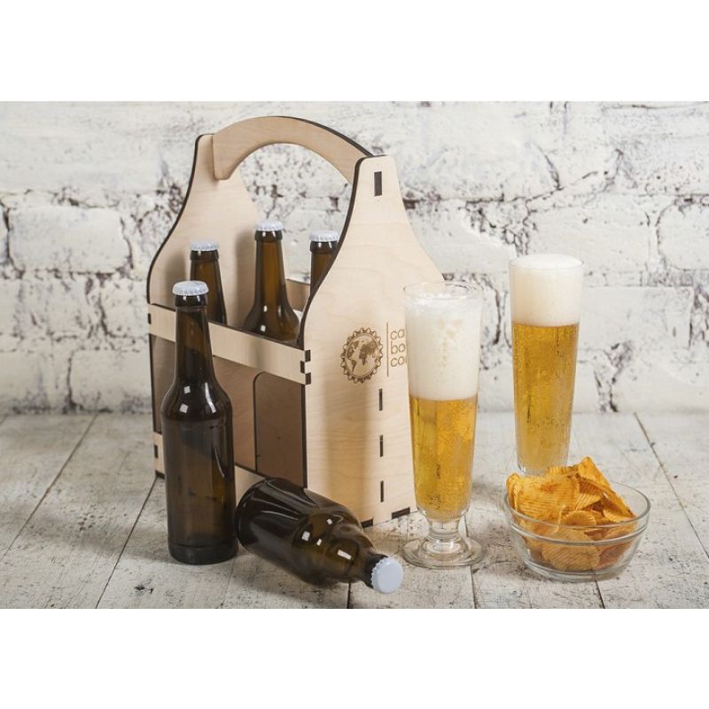 Перегородки внутри гарантируют сохранность шести бутылок пива при транспортировке. При этом сам он небольшого размера и занимает немного места. Этот набор для пива впишется в интерьер почти любого помещения: дача, дом, квартира, арт-кафе, ПАБ, ресторан.