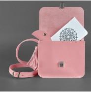Женская вертикальная кожаная поясная-кроссбоди сумка Mini (розовая)