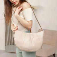 Кожаная женская сумка «Круассан» (светло-бежевая) кожа krast